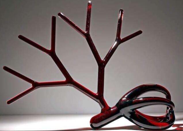 树根型醒酒器后,酒液会逐渐分流,直至充满。这样一来真是像极了红色的树根,看起来华丽而又壮观。