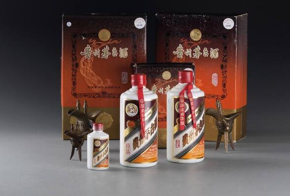 1、这个系列是以茅台经典造型为基础,之时对于颜色有些调整,但是茅台经典的红色绸带依然系在酒盖之处。