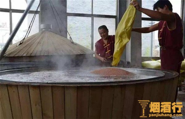 首先是将高粱破碎,随后进行蒸煮,再将蒸煮后的高粱渣和上一年的尾酒与大曲混合,然后在酒窖进行天然发酵,需要等发酵达到一定程度,取出发酵物。然后再加上入破碎后的新高粱,再次进行蒸煮、蒸煮后重复进行混合发酵,取出之后,再继续蒸煮,此时可取酒,再加入破碎后的新高粱,要循环9次蒸煮,酿造茅台的过程最少需要一年时间,用的大曲是浓香型白酒的数倍,成本很高。