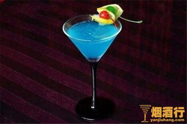 以蓝橙皮酒为基底,调制出的一款酒体为蓝色的鸡尾酒,在酒吧放松心情时畅饮,最接地气。它能令人心情放松,如果想制适点浪漫后气氛,请女生喝这个非常好,是撩妹的极品好酒。
