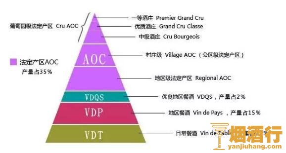 如勃艮第特级园 AOC﹥ 一级园 AOC﹥ 村庄级 AOC﹥ 大区级 AOC;波尔多一级名庄﹥普通列级名庄。