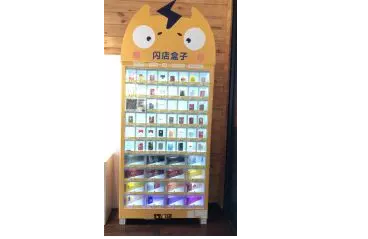 3、进店之后可以发现一个名为“闪店盒子”的无人智能售烟机。通过观察可以发现,售烟机内涵盖了高三类至中一类价位卷烟,基本以当地日常口粮为主。