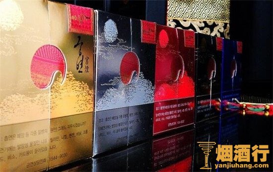 宫烟一套分为5盒装,分别为金、银、红、蓝、黑5种颜色。烟盒以韩国著名的景福宫为主图,金光闪闪,王气十足。整体外观结构和设计都相当完美,360度无死角的完美,充分体现了它的精美与别致。它的奢华与大气难以言表,是我见过最漂亮的香烟。