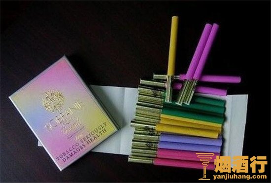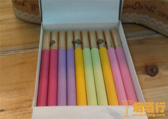以全开式硬盒包装,以渐变的粉色为主打色,整个外观设计优雅而大气,很抢人眼球的一款香烟,全开式取烟也很便捷。在设计上更符合年轻人的欣赏眼光,很时尚、很玩味的一款香烟。