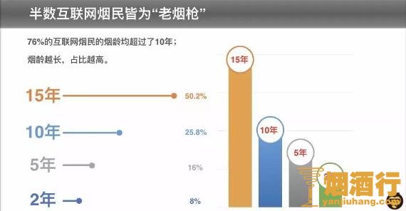 互联网烟民的芝麻信用分集中在650到700分之间;百分之76的烟民超过了十年烟龄,互联网烟民都可成为老烟枪。
