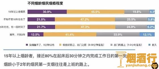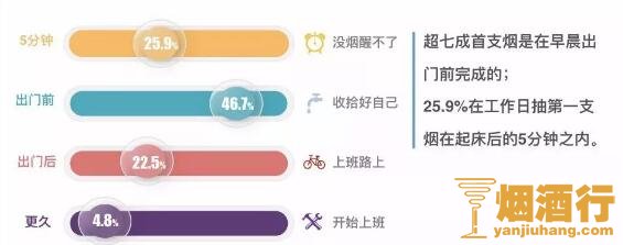 25.5%的烟民在起床5分钟以内,开始抽上第一支烟;