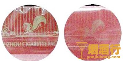 2、小盒包装的松鼠图案和竖直的线条,还有下面一串英文图案都非常的清晰,颜色鲜艳,光泽度高;假烟松鼠图案和竖直线条,英文都非常的模糊,颜色暗淡,没有光泽。