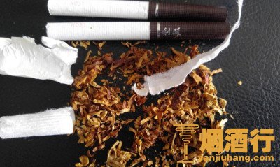 4、看烟丝,真烟的烟丝呈金黄色或者桔黄色,烟丝是经过膨化处理没有黑色的杂质;而假烟烟丝呈暗褐色,烟丝由于技术不够没有经过膨化处理,杂质很多,从烟灰的可以看出很多的小黑点,杂质多还会导致香烟不耐燃烧,抽两口就没了。
