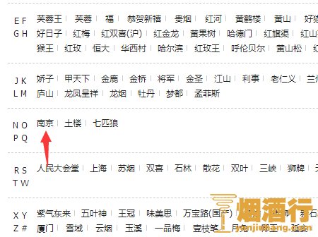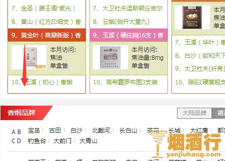 3、下拉找到香烟品牌的栏目。在这个栏目中我们不仅可以查看大陆的香烟品牌,连港澳台和国外的香烟品牌都可以查看到,而且是通过拼音字母查询的。