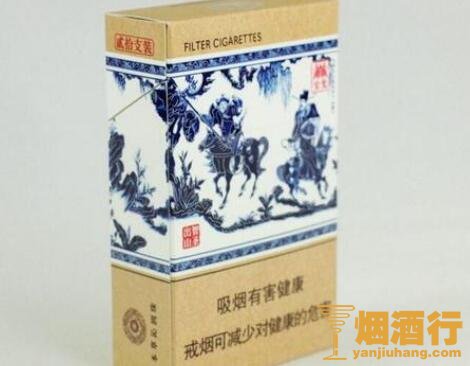 这款香烟包装上十分精美,古典艺术青花图案,配上金色底色,带来一种奢华贵气之感。因香烟属于高档次,所有材料都是严格选取优质的原产地原材,所以在价格上也是颇高的,目前市面售价为100元/包,主要是应对一些高端消费群体。