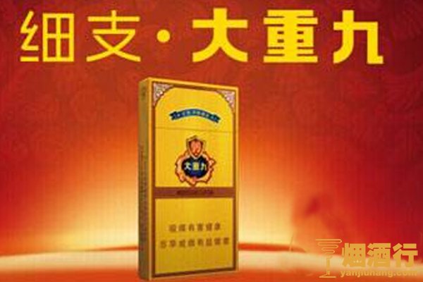 价格100/一包。这款香烟采用硬盒包装,以金黄色为主色调,利用盾牌花边衬托出“大九重”字眼,简单大气的设计却不失奢华端庄。这款香烟采用云南专属烟草基地的优质烟草制作,烟草气味饱满纯正,香味清新雅致。