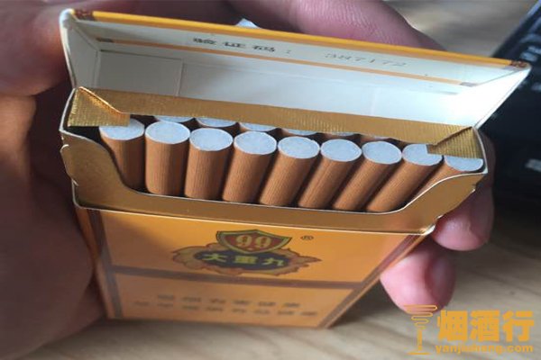 3、看烟支。真的大九重香烟烟嘴切口平整公正,粗细均匀,烟身上面的各种标识非常明显,而假烟由于没有精湛的工艺手法,所以以上均为相反。
