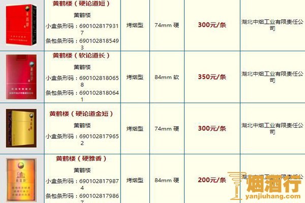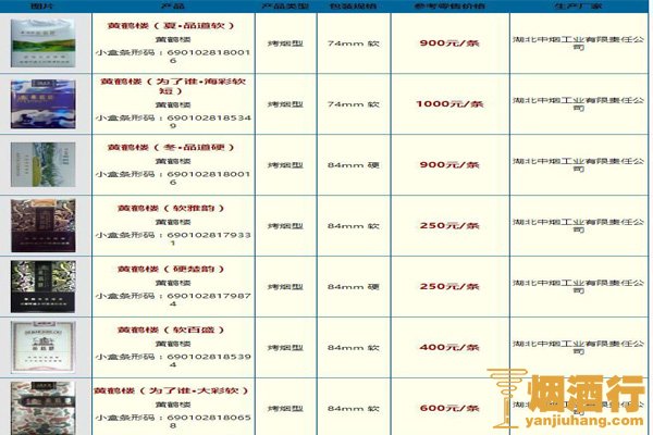 黄鹤楼香烟价格表图