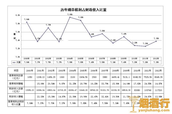 烟草税收占财政的百分比