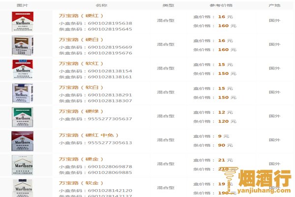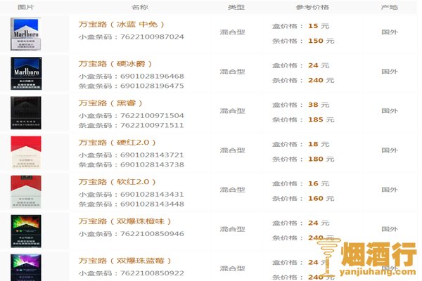 万宝路香烟价目表